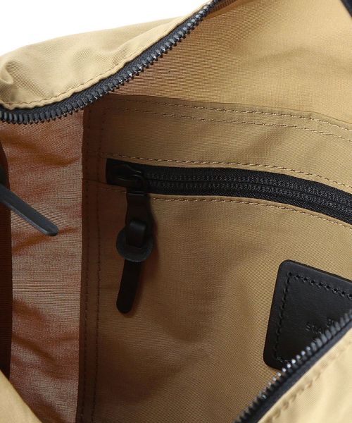 サイドにはスマートフォンなどを収納できるポケットがついており、反対側にはもショルダーテープが収納できるポケットが付いており、すっきりとお使いいただけます。