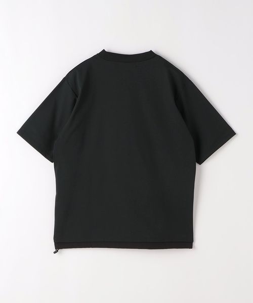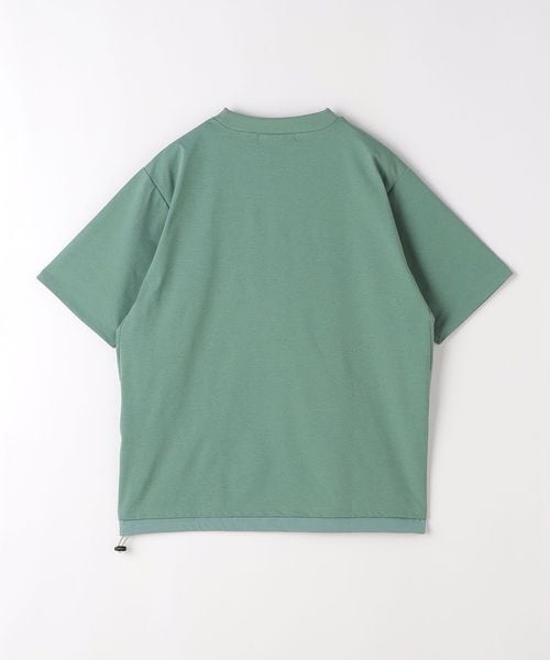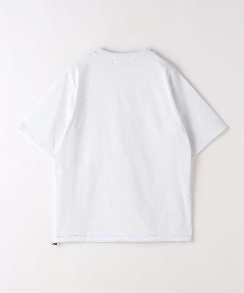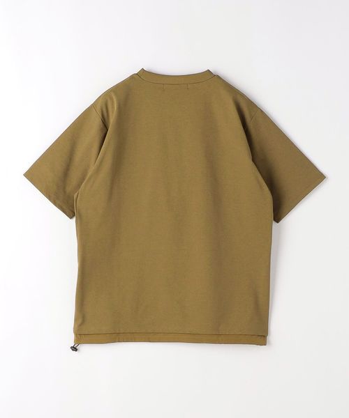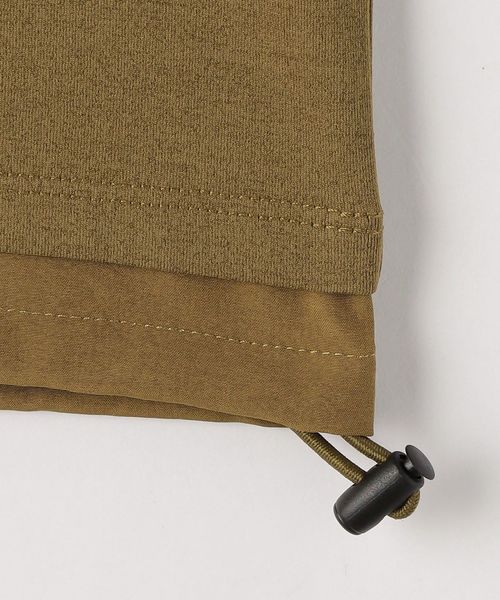 裾にドローコードを入れることで、アウトドア感とシルエット変化を楽しめるようにしています。