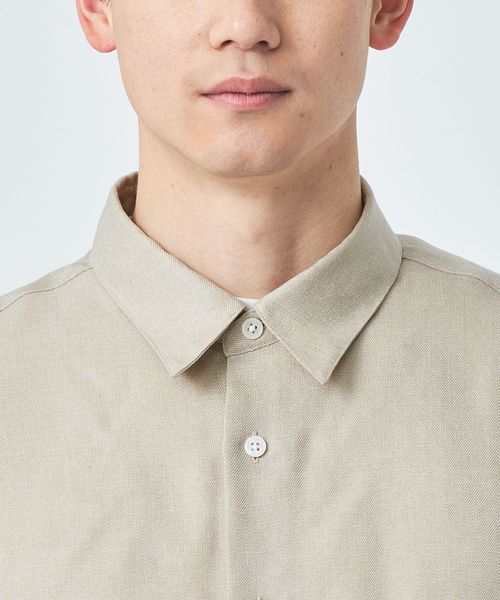 レギュラーカラーの襟型は、ボタンを留めても外してもおすすめなデザインです。