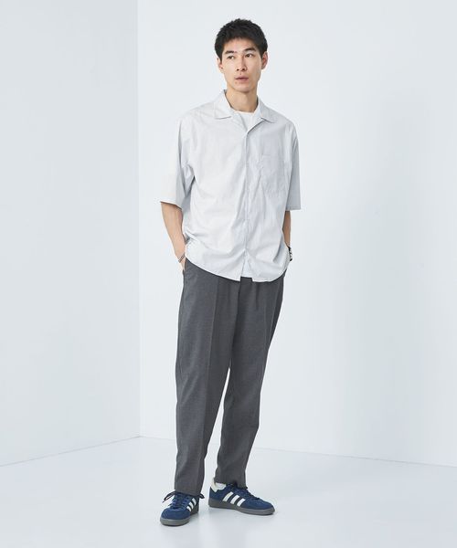 ボタンを閉めればレギュラーカラーとしても着用可能な、クリーンさのあるデザインです。