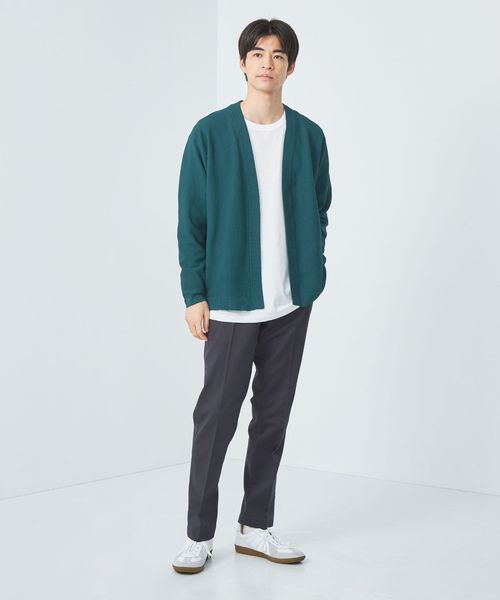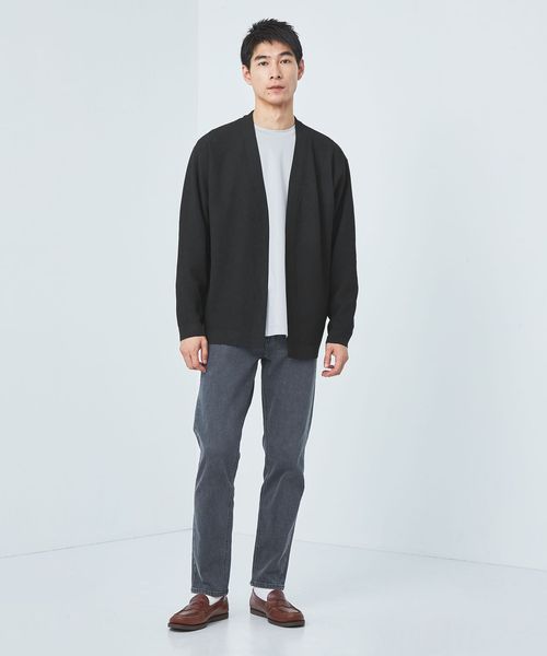 気温調整にも便利なカーディガンは、カットソーやシャツの上から羽織るのがおすすめ。