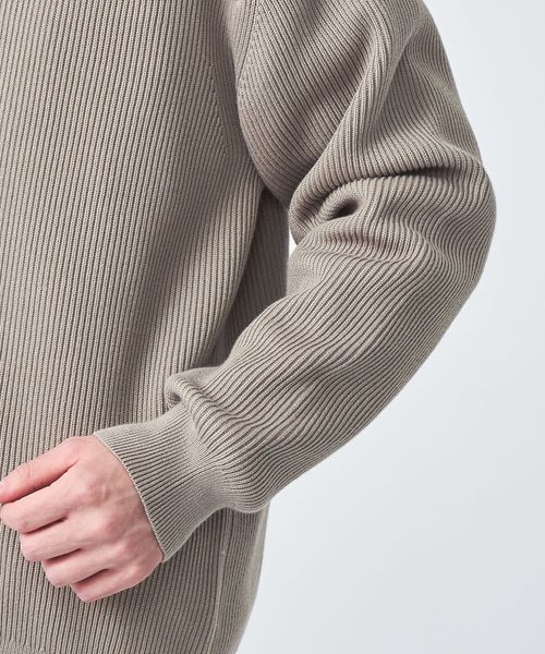 裾と袖部分はリブ編みに切り替えてメリハリのあるシルエットに。