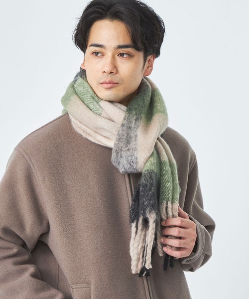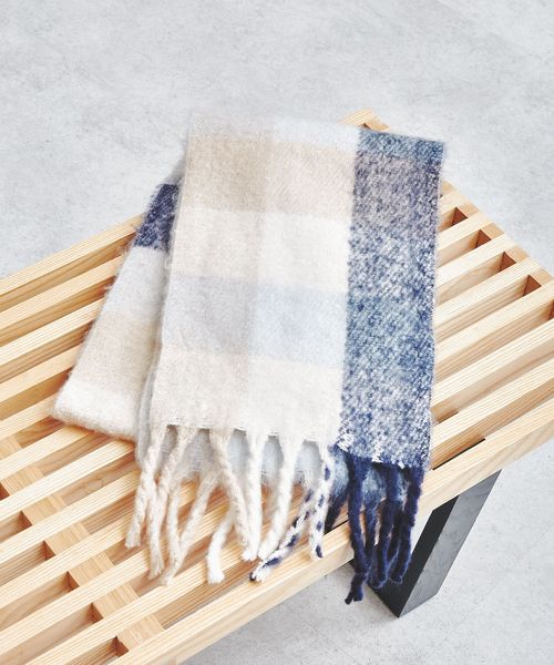 ブラッシュド ブロックチェック柄 マフラー