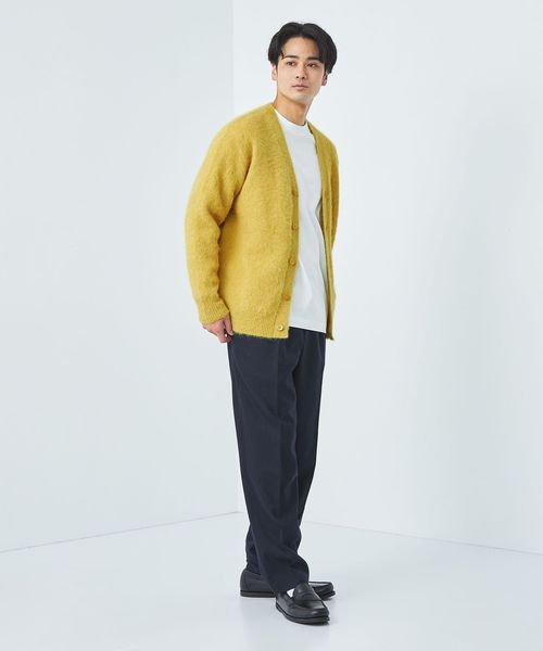 YELLOWにはブラウンやベージュなどの暖色系を、KELLYにはネイビーやライトブルーなどの寒色系のボトムスを合わせると、同系色で綺麗にまとまり、抜け感のあるスタイリングが完成します。