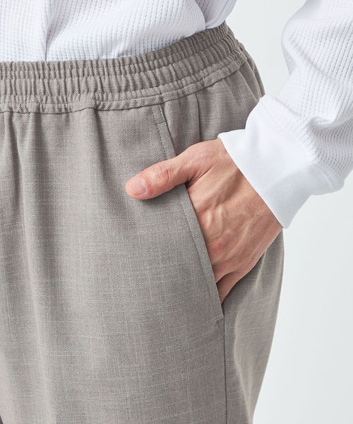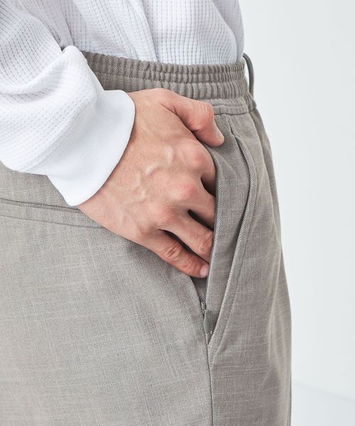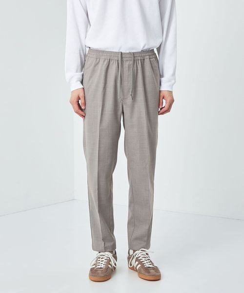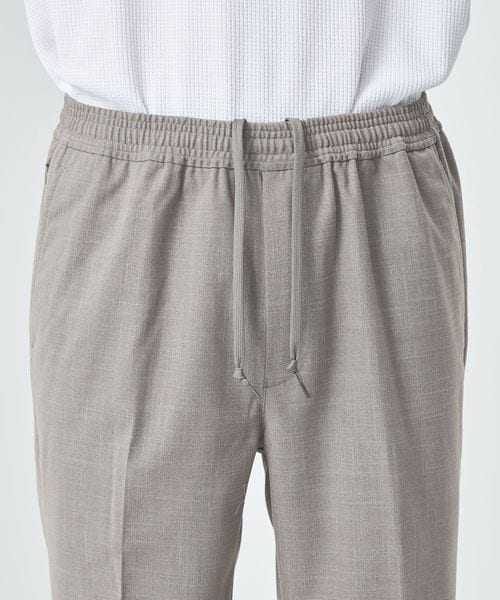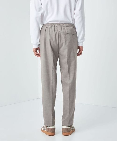 リラックスしたウエストのイージー仕様と、クリース入りデザインが絶妙なバランスです。