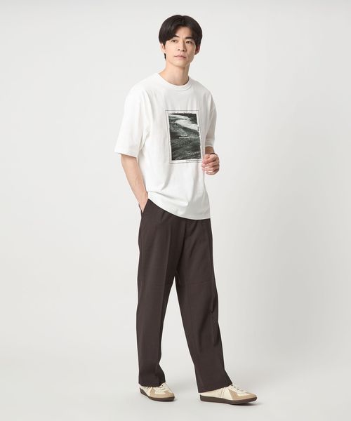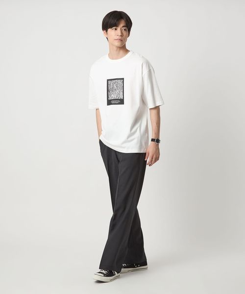 クリーン見えする、知的な印象のグラフィックTシャツ。