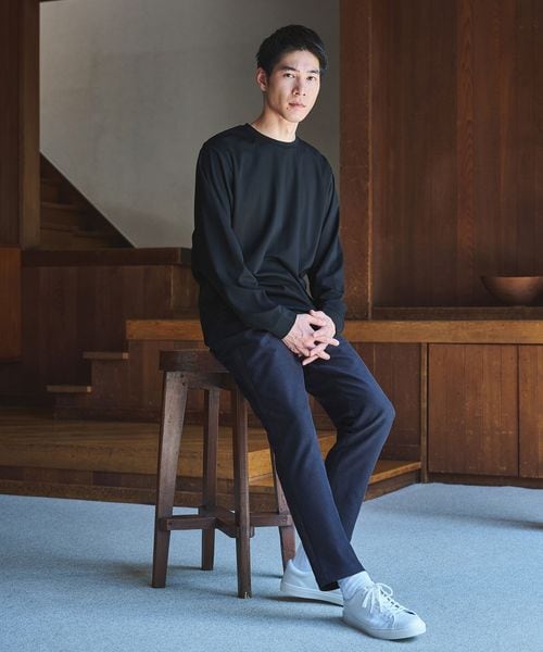 スラックスやテーパードパンツなど、クリーンなボトムスと合わせると上品に仕上がります。