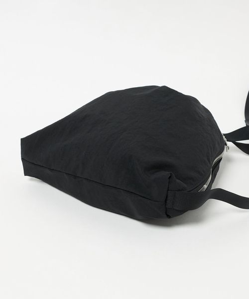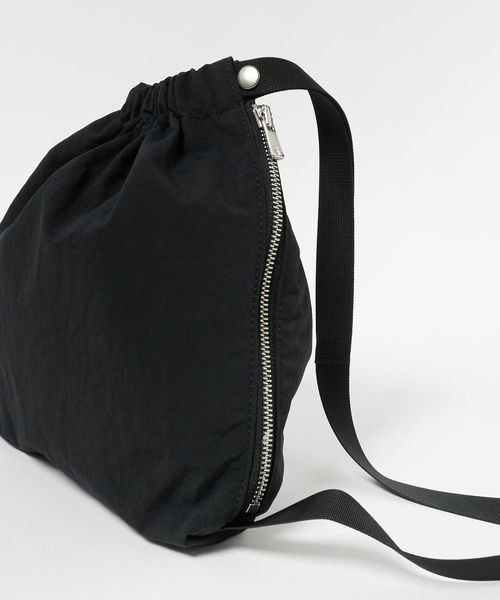 巾着のディテールを落とし込んだショルダーバッグ。