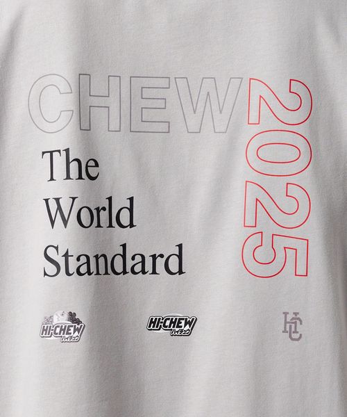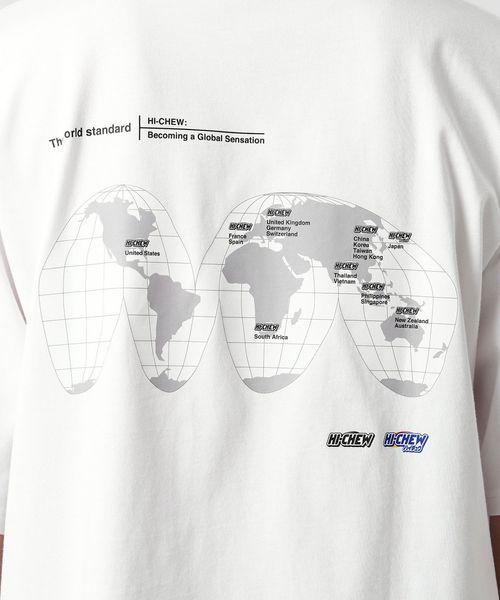 ハイチュウの海外人気の火付け役となったメジャーリーグの背景から、レトロスポーツを参考にデザインした半袖Tシャツ。