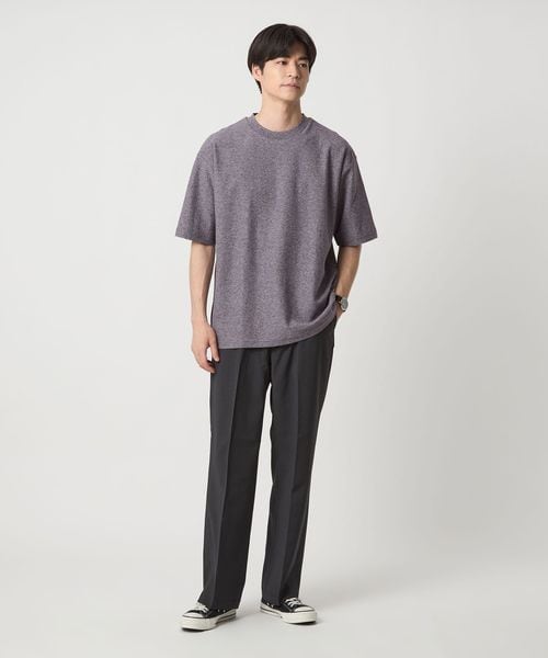 シンプルな無地アイテムと合わせると、メランジデザインがアクセントに。