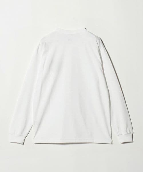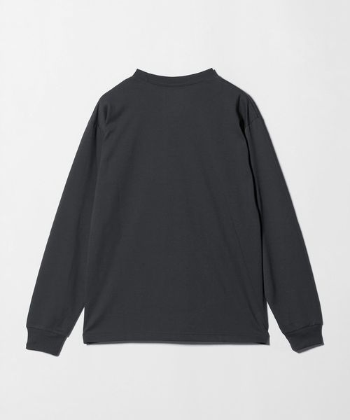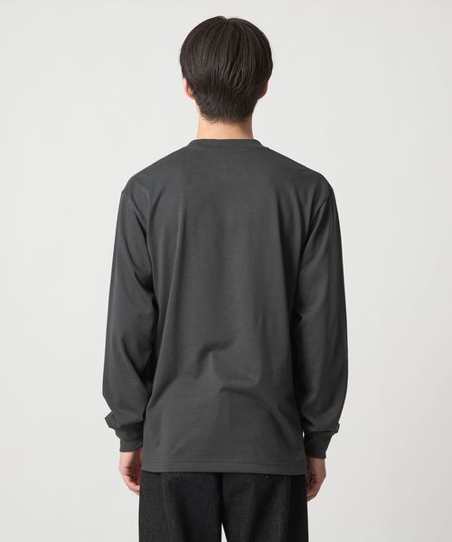 左胸にスクエアロゴを配置した、シンプルなデザインの長袖Tシャツです。