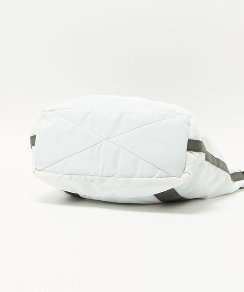 ・表側は、ナイロンテープのアクセントを配したデザインを、裏側はジップポケットとロゴプリントを落とし込んだデザインを採用。