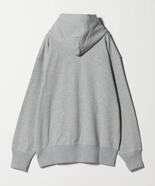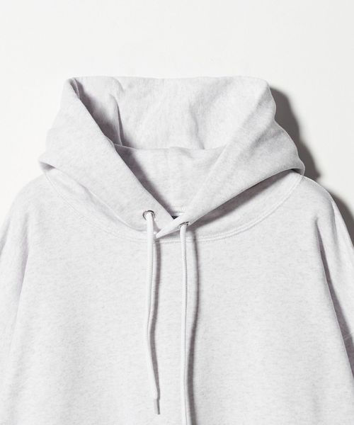 フードは丸みのあるベーシックなシルエットにし、身生地同色の丸紐、シルバーのアイレット、カンガルーポケットなどのディテール部分も手抜きのない仕上がりです。