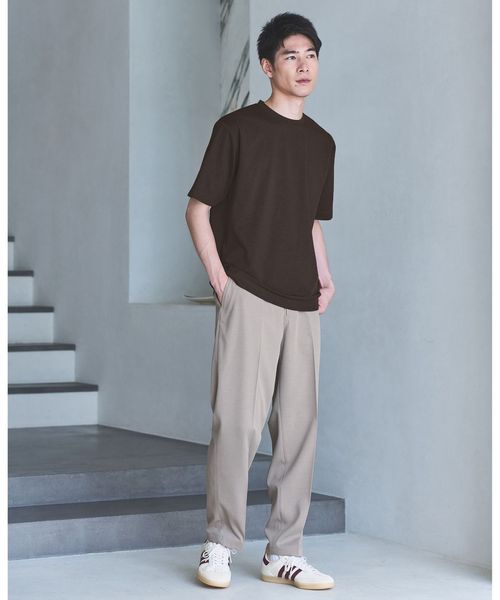 スラックスやテーパードパンツなど、キレイメなボトムスと合わせると品よく仕上がります。