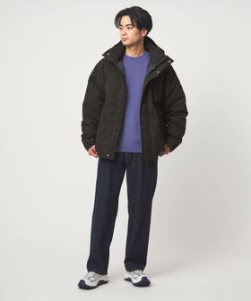 フードや裾にはスピンドルコードを通しており、調節することでシルエットのアレンジを楽しめたり、風が入りにくく暖かく着用ができます。