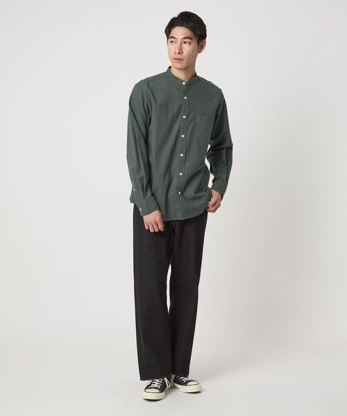 ナチュラルフィット ビエラ バンドカラー シャツ