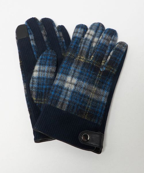 コーデュロイ チェック グローブ 手袋 ―スマートフォン対応―