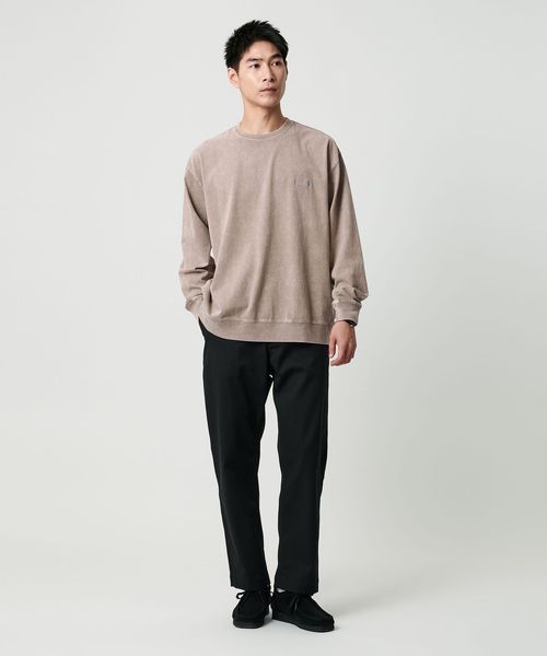 胸元には同色の刺繍ロゴをワンポイントでさりげなく配置し、デニム以外のボトムスとも合わせやすいシンプルな一枚に仕上がりました。