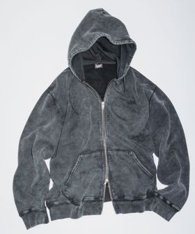 デザインをイチから別注。ヴィンテージライクなフェード感が一番のポイント。クリーンなスタイリングにこれ合わせるだけで、今っぽさを感じるスタイリングにサマ見えする。暑い時期には羽織として、寒くなったらアウターのインナーとして、フルジップフーディという型も今の気候感にぴったりな便利アイテムではないだろうか。