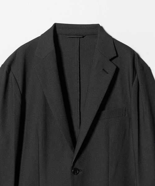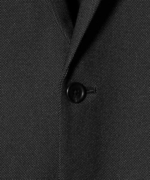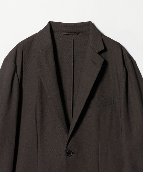 ジャケットはドロップ寸を大きめに設定し、ほどよくウエストシェイプしたややくびれのあるシルエット。