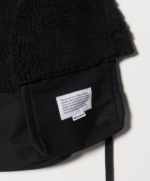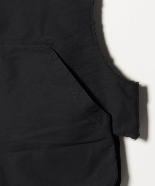 フロントはスナップボタンの他、ポケット部分に縫い付けられたドローコードでも留める事が可能になっており、インナーとしてだけでなくジャケットなどの上からでも着用しやすいデザイン。