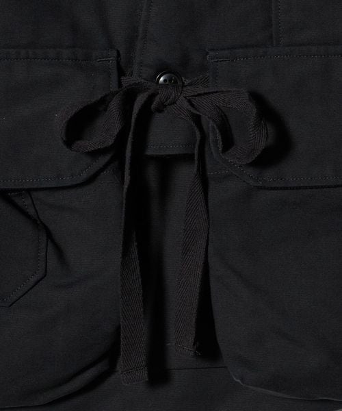 前方へぶら下がるように取り付けられた大きめのフロントポケットや背面のゲームポケットなど、ハンティングベストをルーツに持った、実用性の高いディテールが特徴のアイテムです。