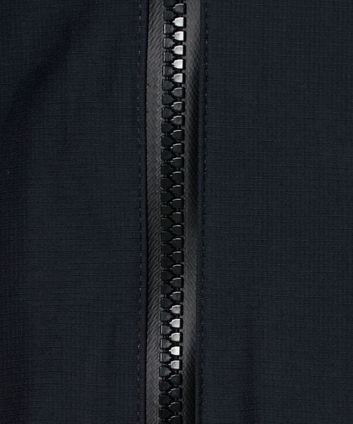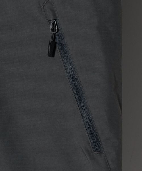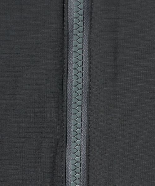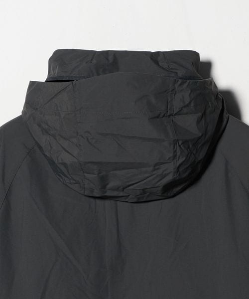 スタンド襟にはフードの収納された仕様になっており、天候によってスタイルを変えて着用いただけます。