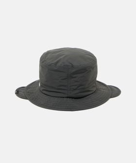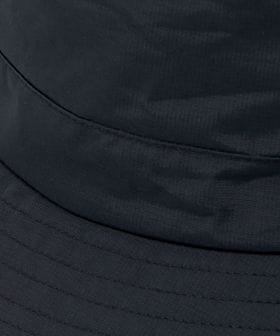 表地に2.5層素材を使用し、裏地にはフリース素材を組み合わせた別注シコロ付きバケットハット。