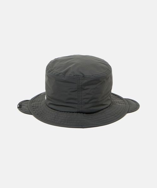 表地に2.5層素材を使用し、裏地にはフリース素材を組み合わせた別注シコロ付きバケットハット。