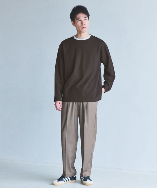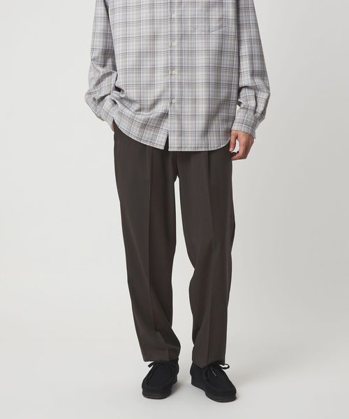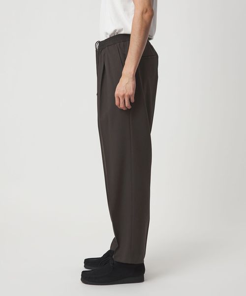 ワンタック入りのリラックスしたウエストイージー仕様ながら、クリース入りデザインや前開きファスナーが絶妙なバランスが特徴。