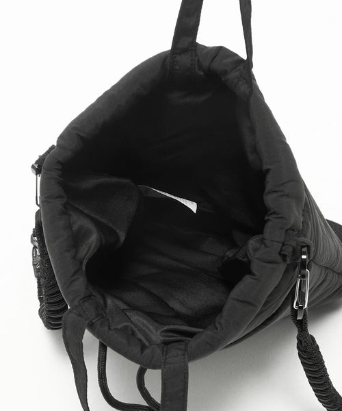 型から別注して制作した巾着型中綿ショルダーバッグ。