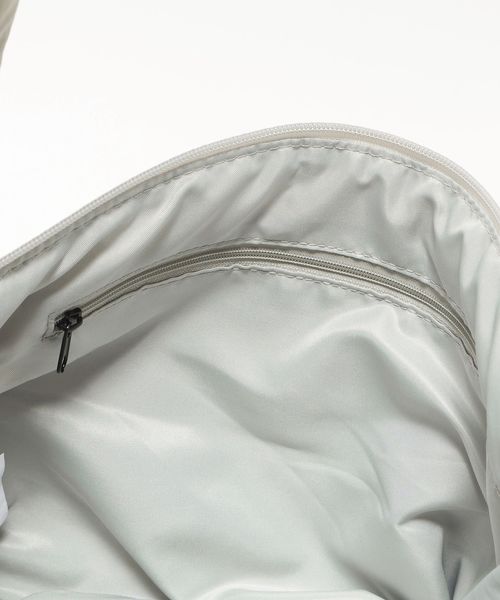 ショルダー部分はサイズ調整が可能で、ストラップのギャザーデザインもアクセントとしてポイントになっています。