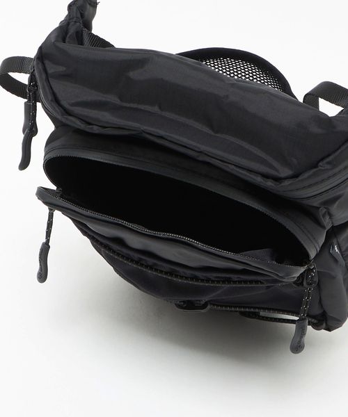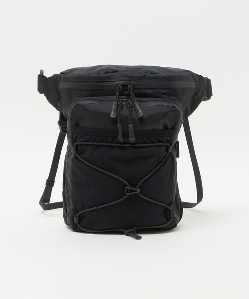 また片手で簡単に調整可能なアジャスター仕様のショルダーストラップに加えて、活動時のズレを軽減するサブのウエスト紐をプラスしています。