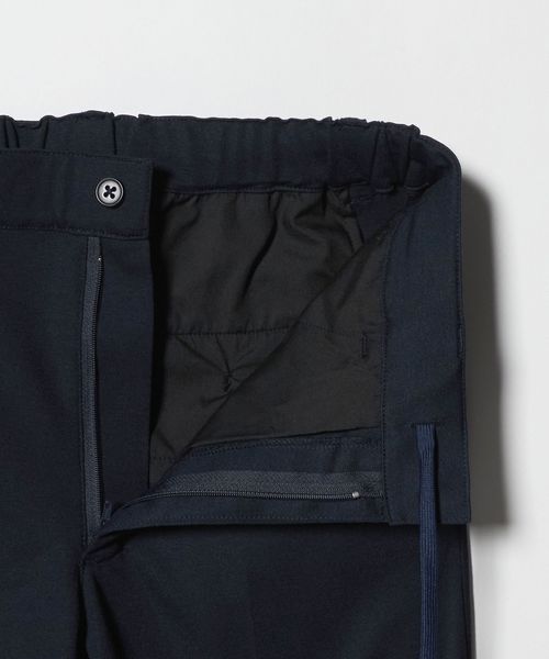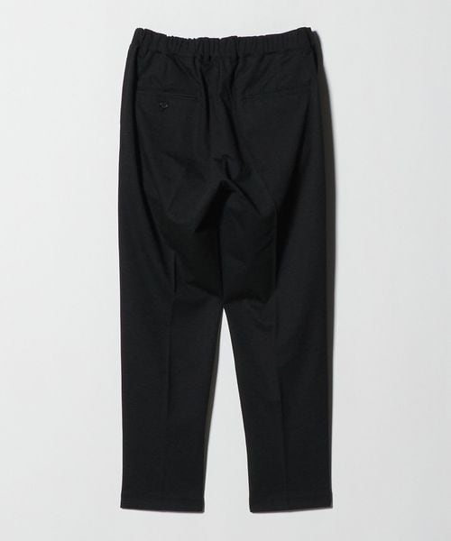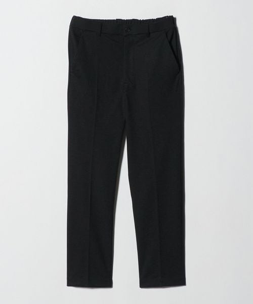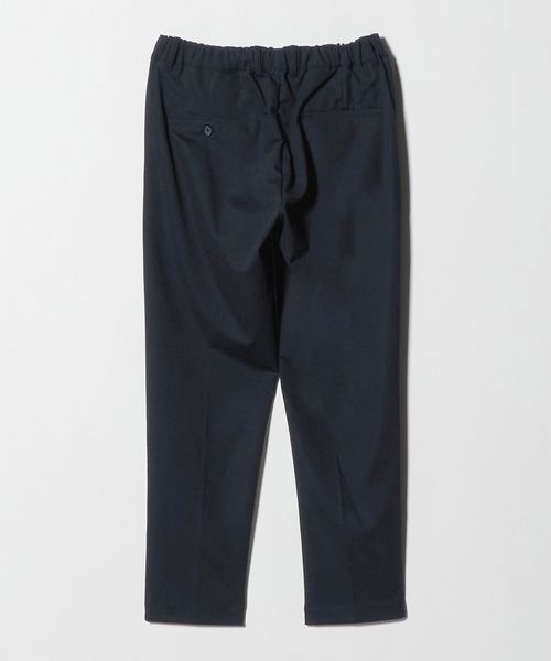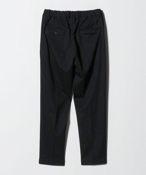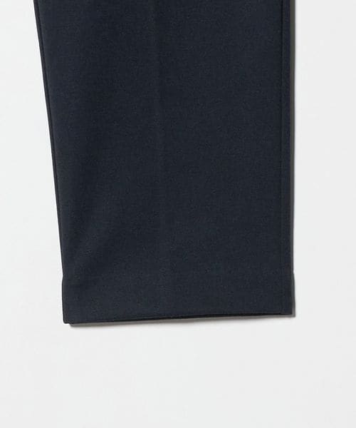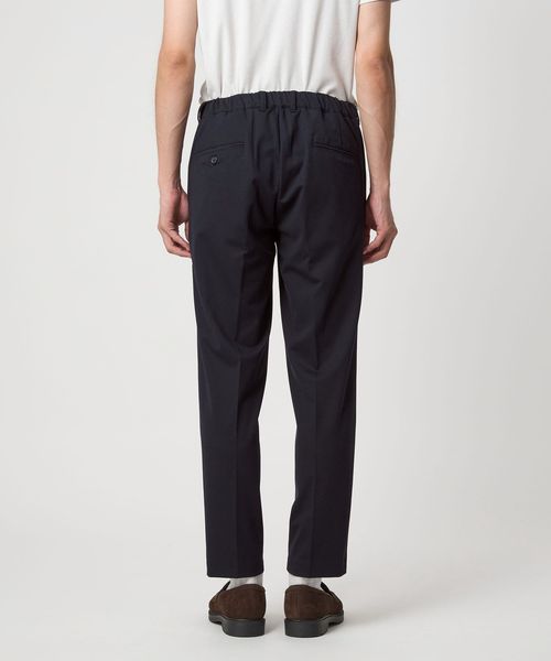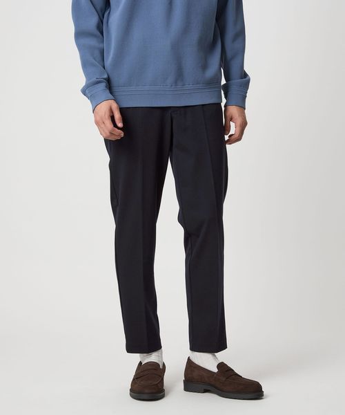 ノープリーツのセンタークリース入りテーパードシルエットがクリーンな印象。