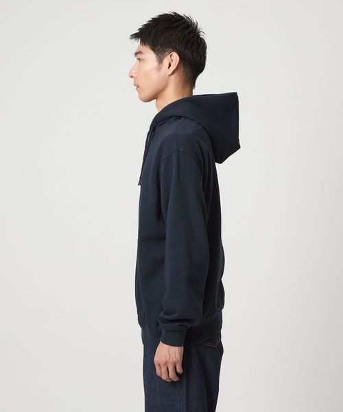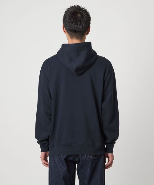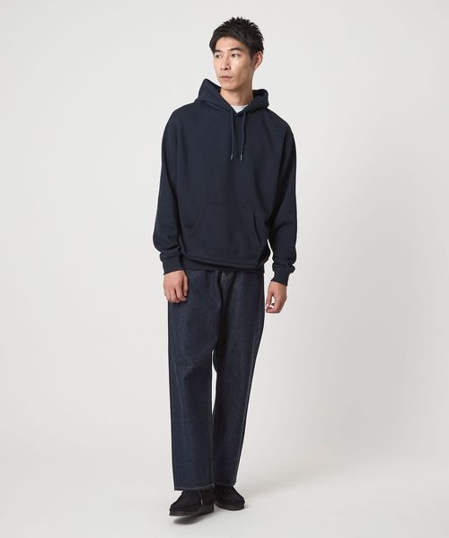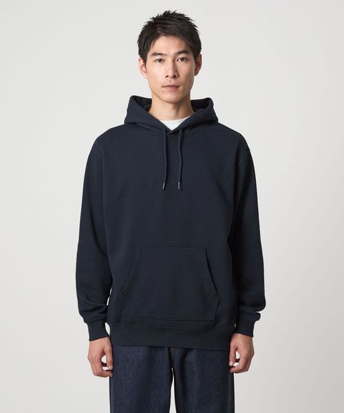 適度なゆとりを持たせたベーシックデザインのパーカー。