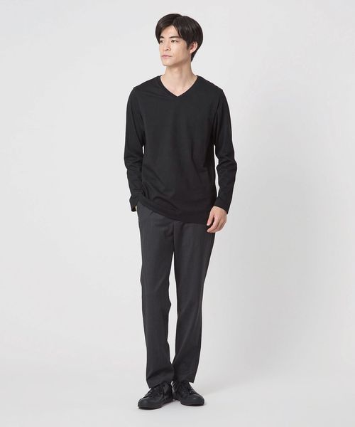 LONG FIBER COTTON クリア Vネック 長袖 Tシャツ