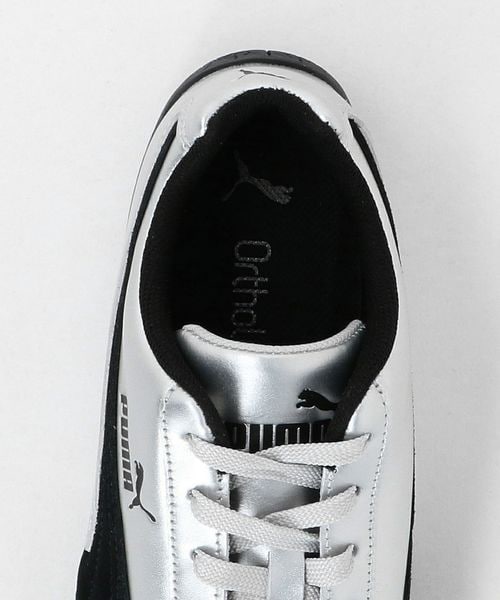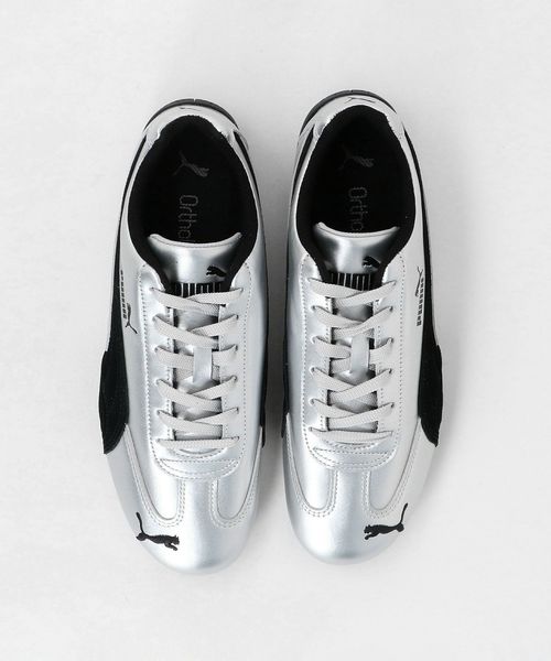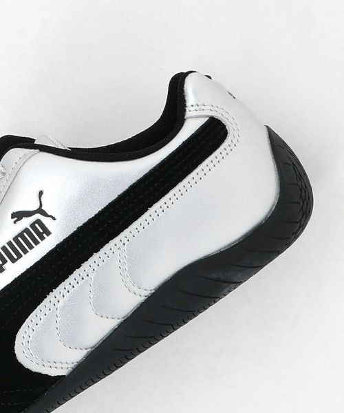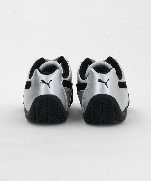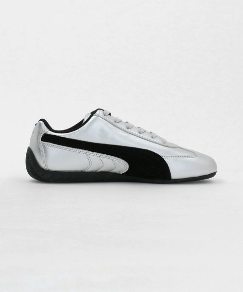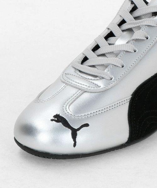ドライビングシューズにインスパイアされたスピードキャットのスリムな形状はそのままにメタリックアッパー、刺繍されたプーマキャット、モータースポーツのドライビングシューズにインスピレーションを受けたかかとを包むラバーアウトソールが特徴。