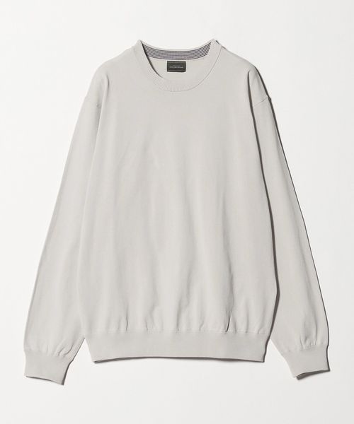 滑らかな風合いのコットンにポリエステルをブレンドした天竺編みのハイゲージニットです。