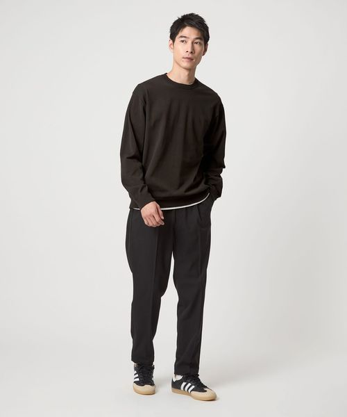 ネックや袖口・裾リブはダブル仕様でしっかりとした印象に。