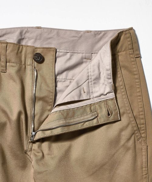 定番で着回しの利く、スリムシルエットのチノパンです。