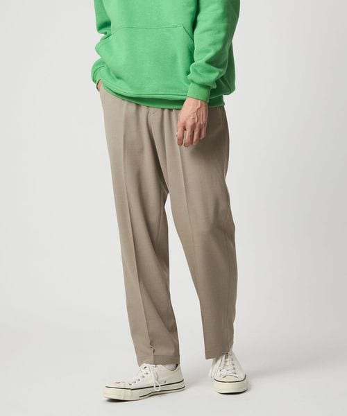 リラックス感はあるものの、テーパードシルエットやセンタークリースによる品のあるワイドさがポイントです。