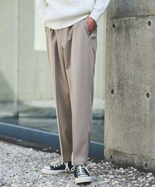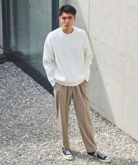 リラックス感はあるものの、テーパードシルエットやセンタークリースによる品のあるワイドさがポイントです。