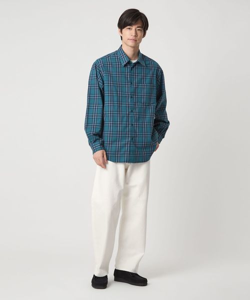 レザーライクのシャツやウール調のトップスと合わせた、異素材の組み合わせがおすすめです。