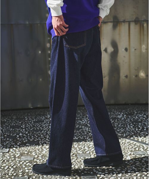 ※こちらの製品はインディゴ染料を使用しております。着用により、他の衣類や淡色のベルト、バッグ、靴、ソファやシート等に色が付着することがありますのでご注意ください。洗濯の際は、色落ちしますので、単品洗いをしてください。また洗濯により徐々に色あせします。
