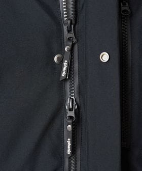 前立て部分は両開き仕様のファスナーとドットボタンで開閉可能です。