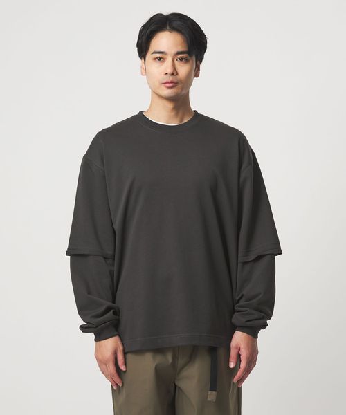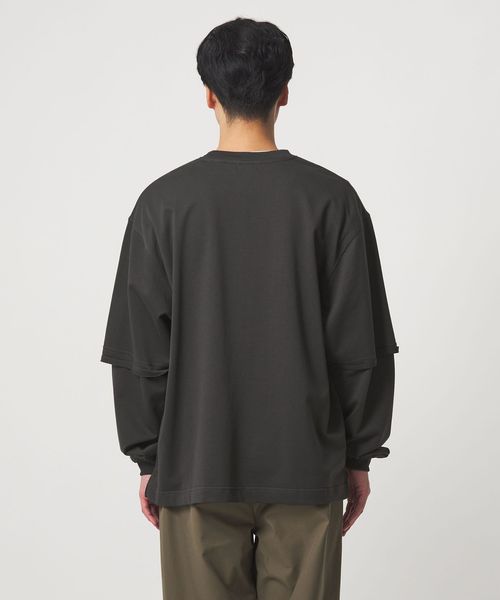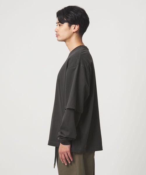 半袖の下に長袖を重ね着しているようなデザインで仕上げたロンT。