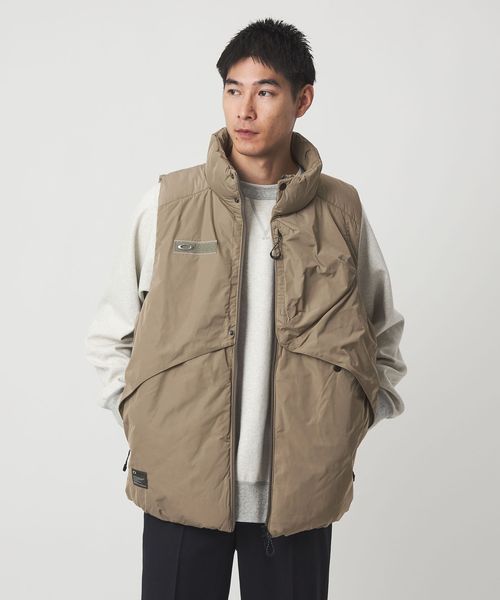 撥水機能と耐久性、意匠性を併せ持つポリエステル素材をベースに採用したインサレーションベスト。