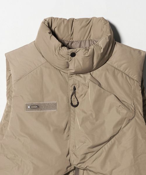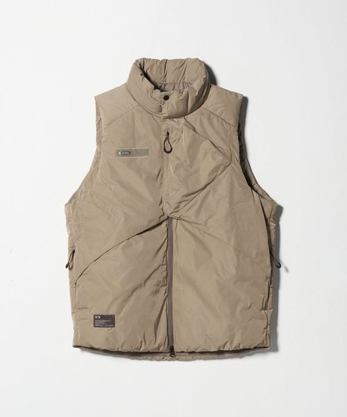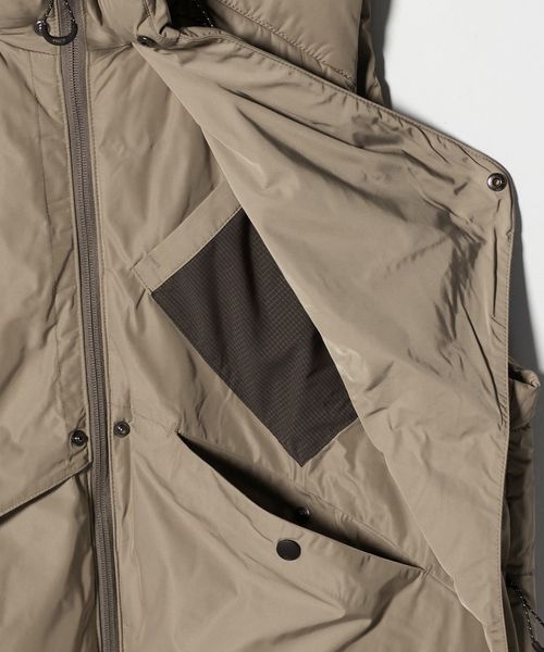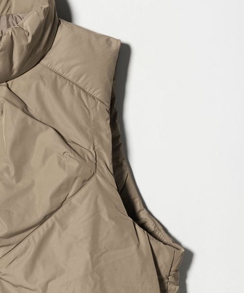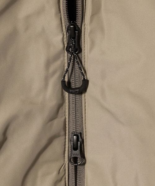 撥水機能と耐久性、意匠性を併せ持つポリエステル素材をベースに採用したインサレーションベスト。