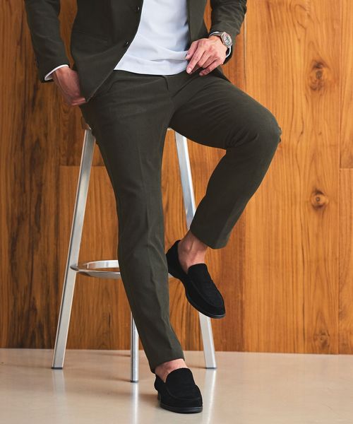 細身ながらも自然にフィットするナローフィットの上下セットアップ。