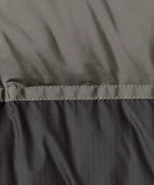 表地はリップストップナイロンにはっ水加工を施し、パックに干渉する肩部分はナイロン素材で補強しています。